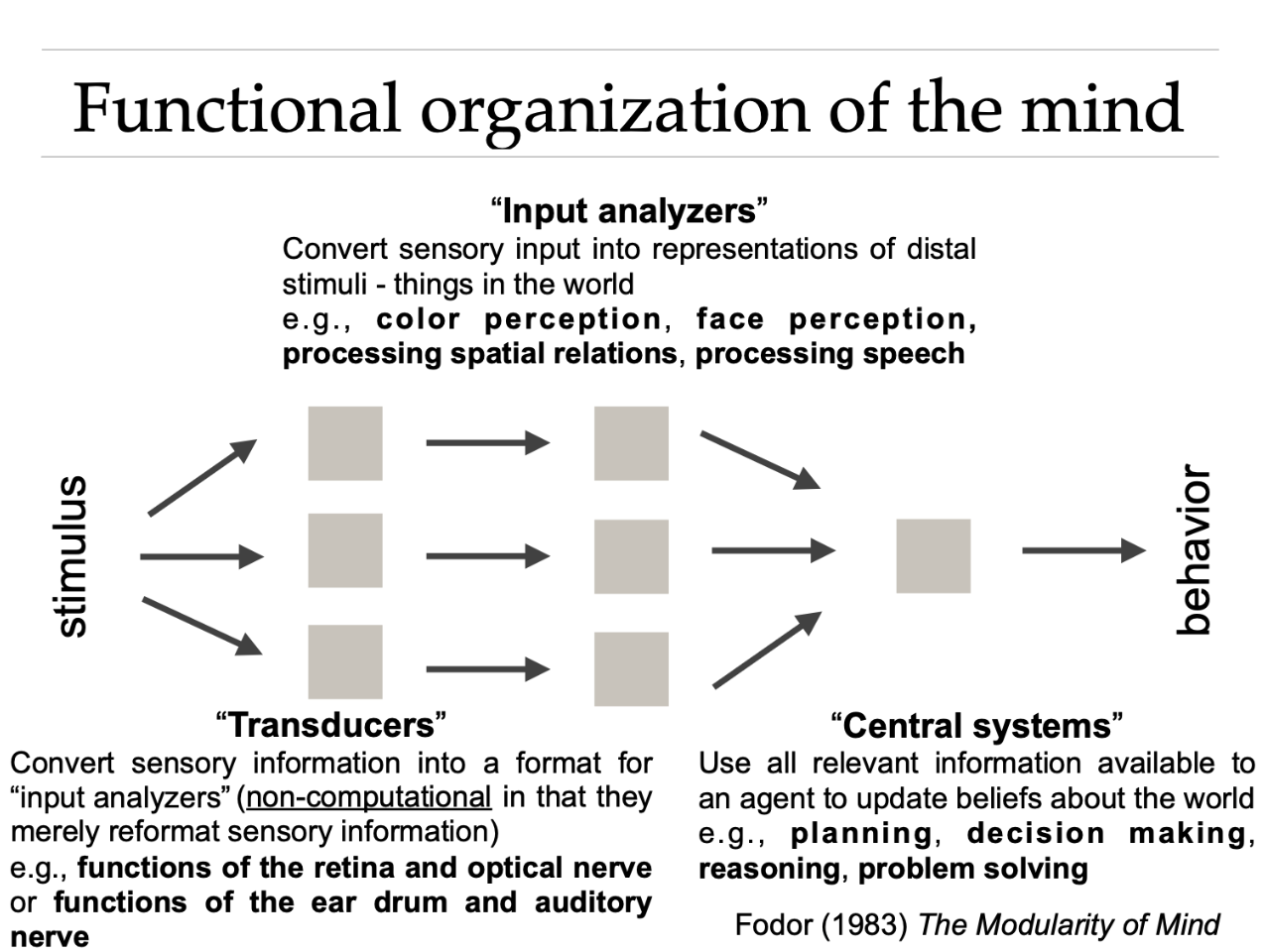 domain-specificity is a putative input analyzer for faces and domain-generality is a capacity for reasoning within central systems.