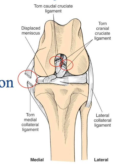 injuries where cranial or caudal cruciate ligaments and collateral ligaments damaged simultaneously
