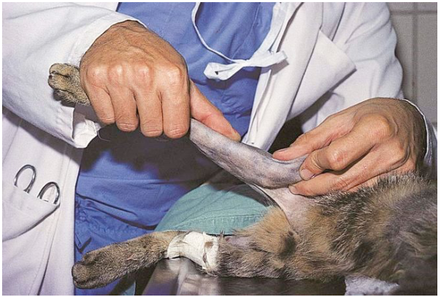 stifle joint extended to examine for collateral injury