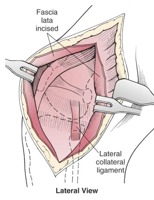 craniolateral approach to expose lateral collateral ligament