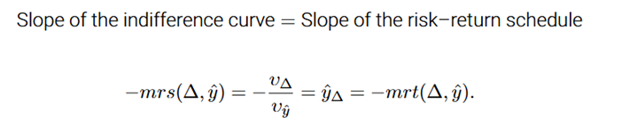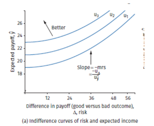 Indifference curve: Show combinations of risk and income that give the same utility.