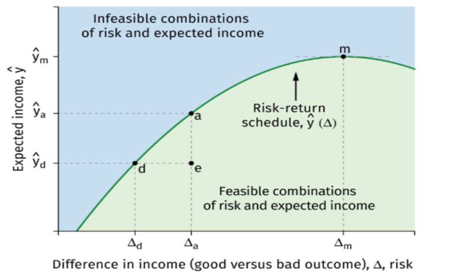 “If I choose more risk (Δ), what expected income (ŷ) can I get?”