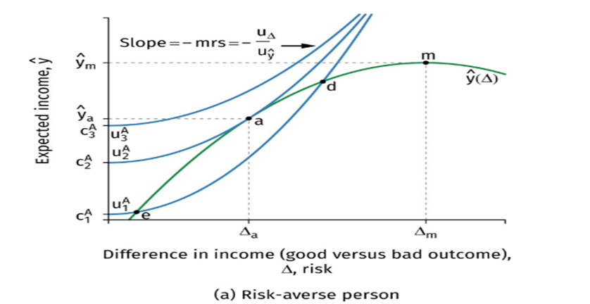 A person is risk-averse if they prefer the utility of a sure income over the expected utility of a risky income.