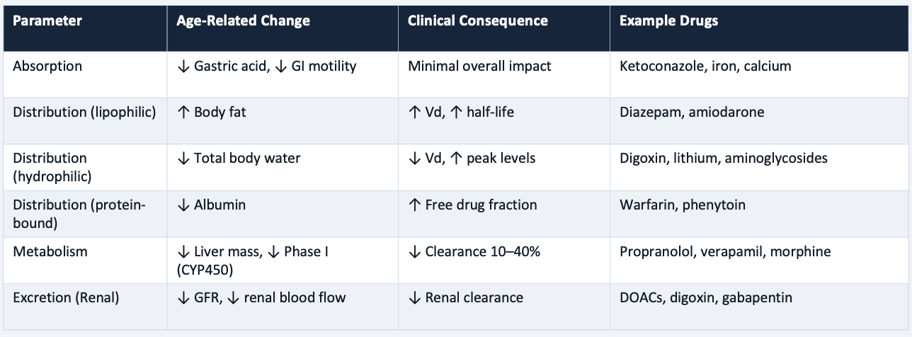 Higher drug levels (PK) + Greater sensitivity (PD) = compounded risk in older adults