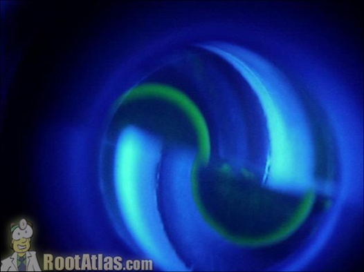 •Note the ‘green’ fluorescence indicating the area of ‘staining’