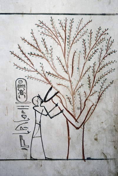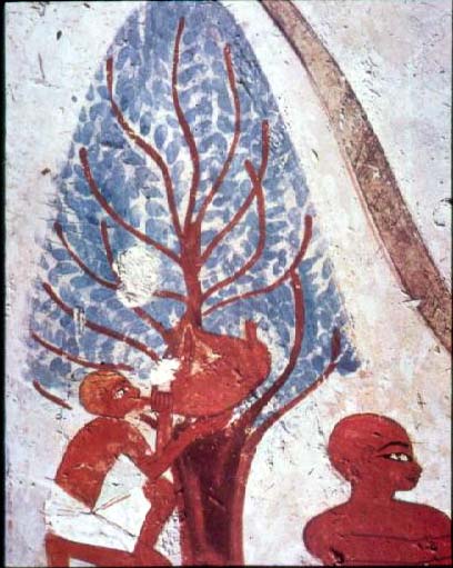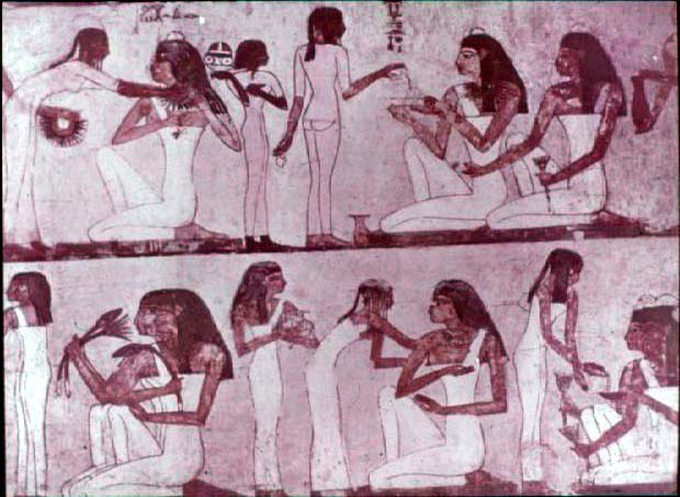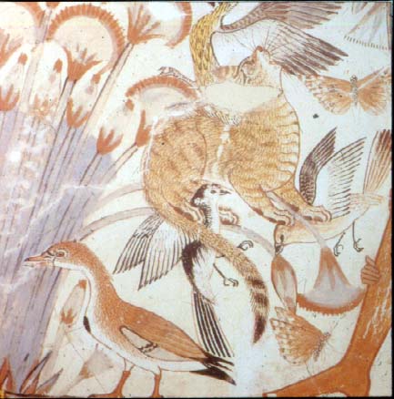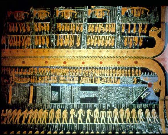Alabaster perfume vase from the tomb of Tutankhamen. From his tomb in VOTK Thebes. Horus in the form of re presents the throne name of king tut. influenced by amarna art, but has gods that amarna art wouldn’t recognize, like Hapi god of the nile.