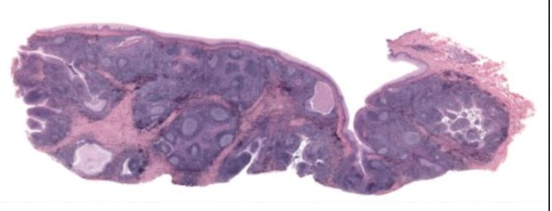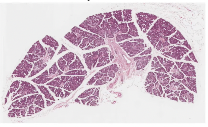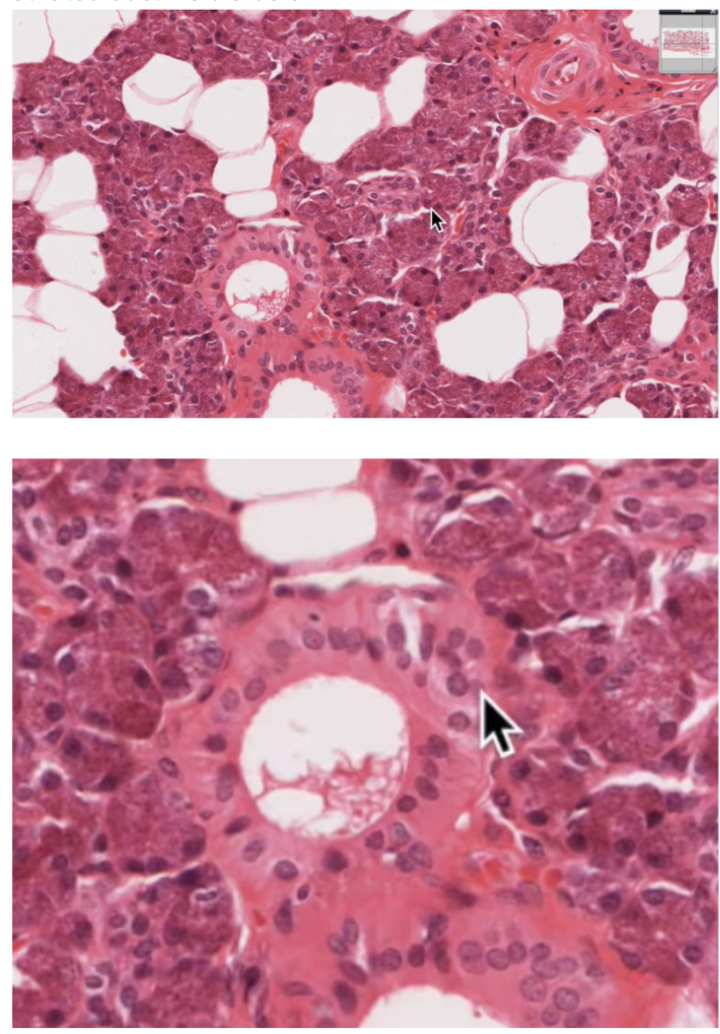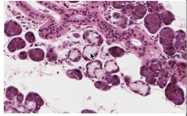 Mucous acini are pale staining (cursor) salivary gland