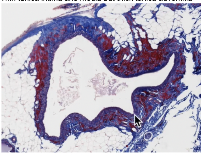 thicker walls than veins