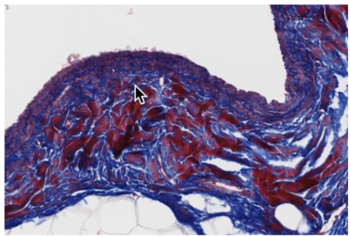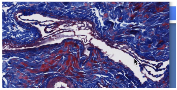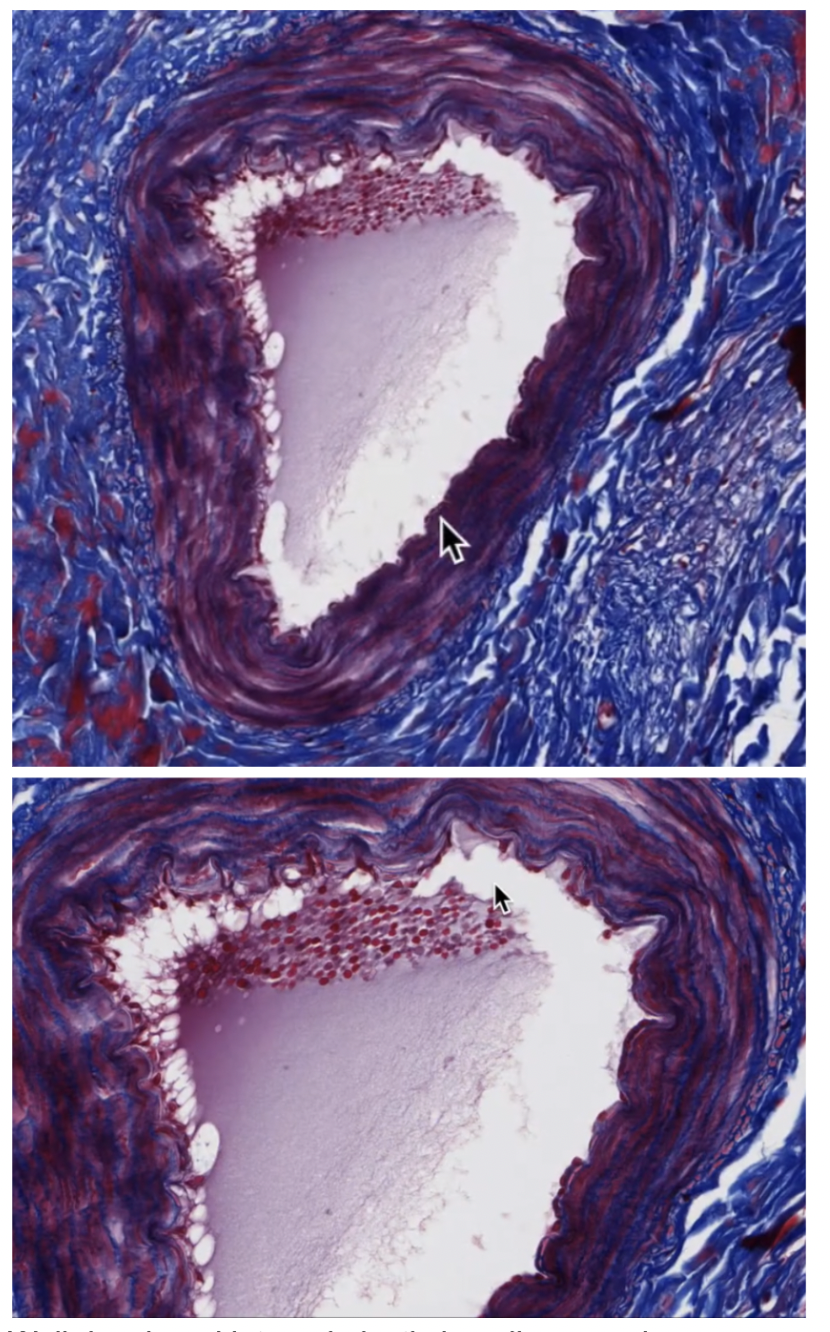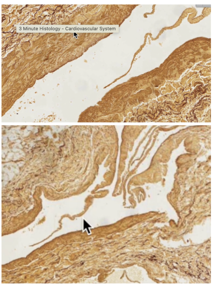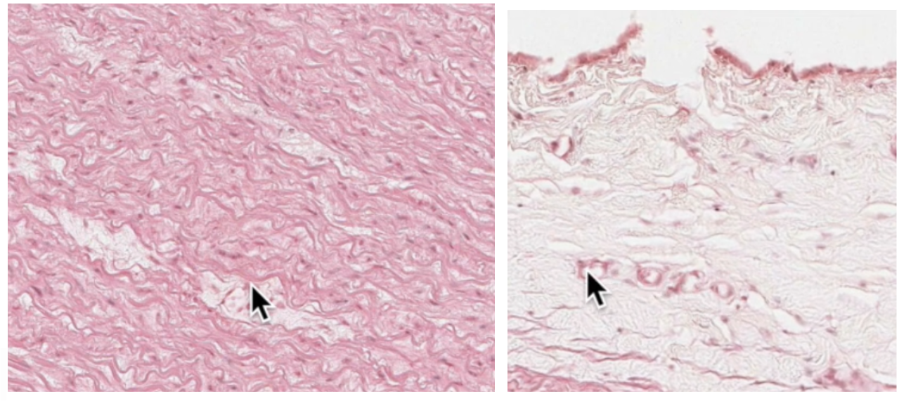 Pointer at Vaso Vasorum in tunica media left, and tunica adventitia right