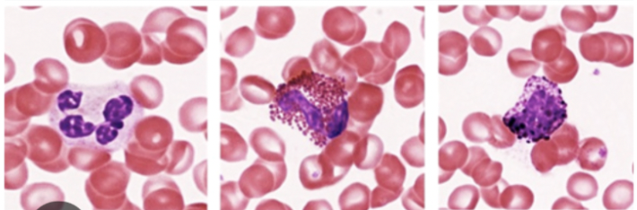 neutrophils, eosinophils, basophils