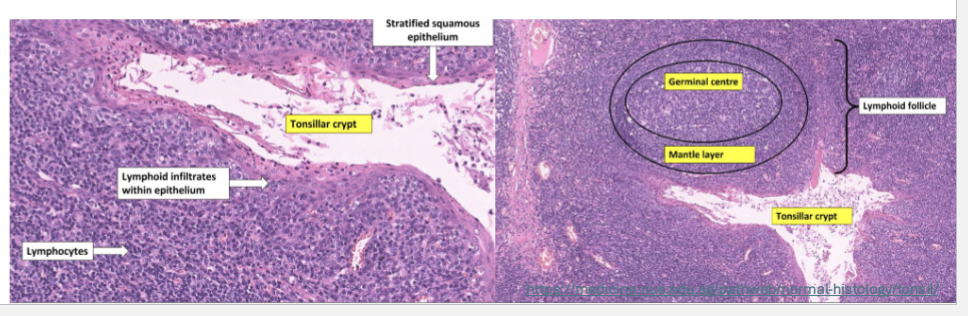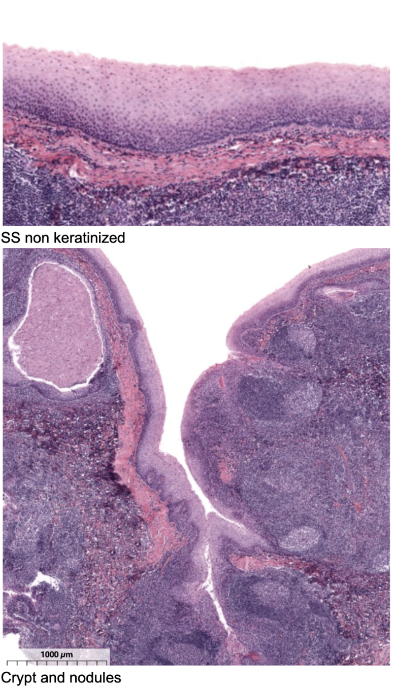 Luminal surface = SS projecting deep into tonsil forming crypts
