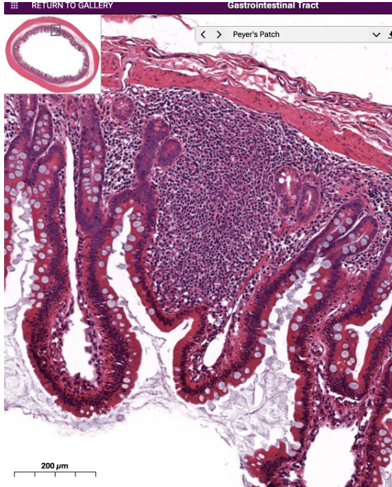 Peyers patches in ileum of small intestine