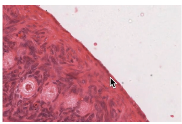 simple cuboidal on ovarian surface epithelium in outer cortex