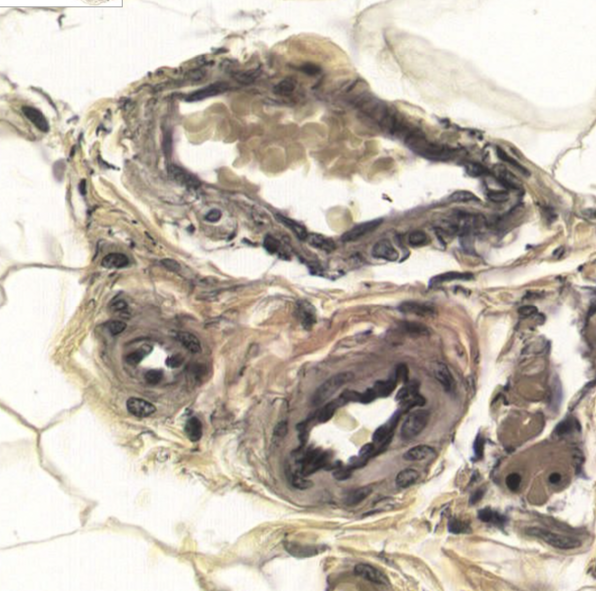 Darker brown = internal elastic lamellae