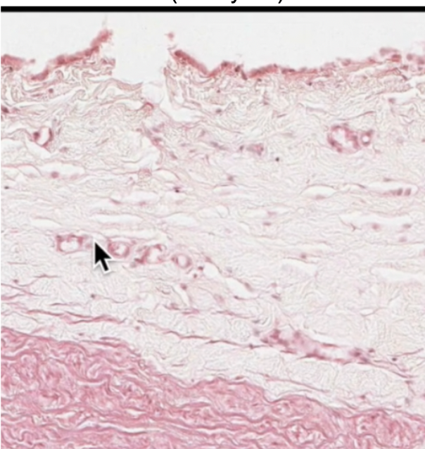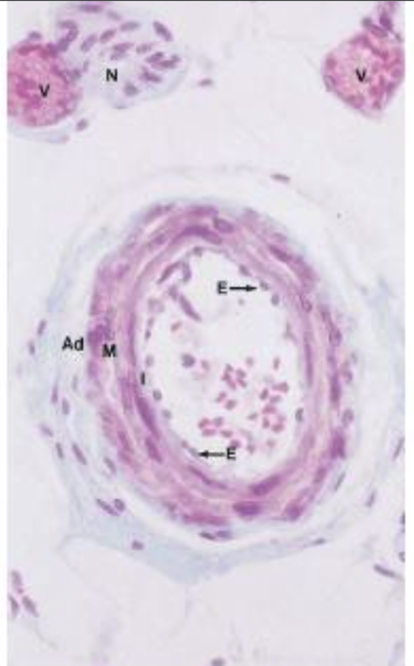Tunica Intima: inner most layer of simple squamous epit. supported by basal lamina and CT
