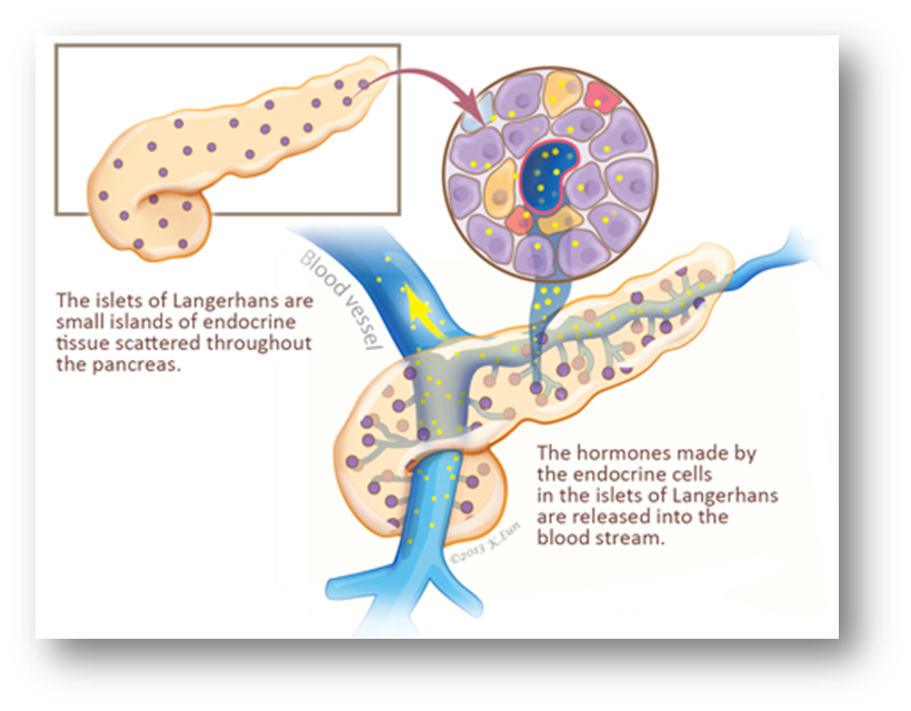ENDOCRINE FUNCTION- Islets of Langerhans secrete hormones