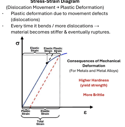 Strain Hardening: the process of strengthening a metal through deformation due to increasing difficulty for dislocation motion