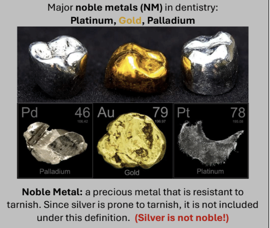 High Noble (HN) > must be 40% or more Au and 60% or more total noble metal