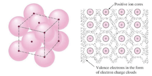 Large interatomic forces are created by the sharing of electrons in a delocalized manner to form non-directional bonding
