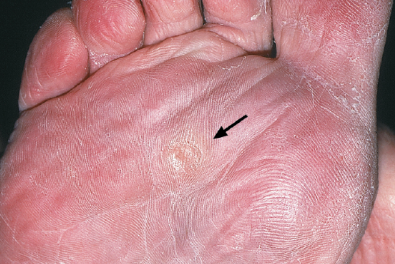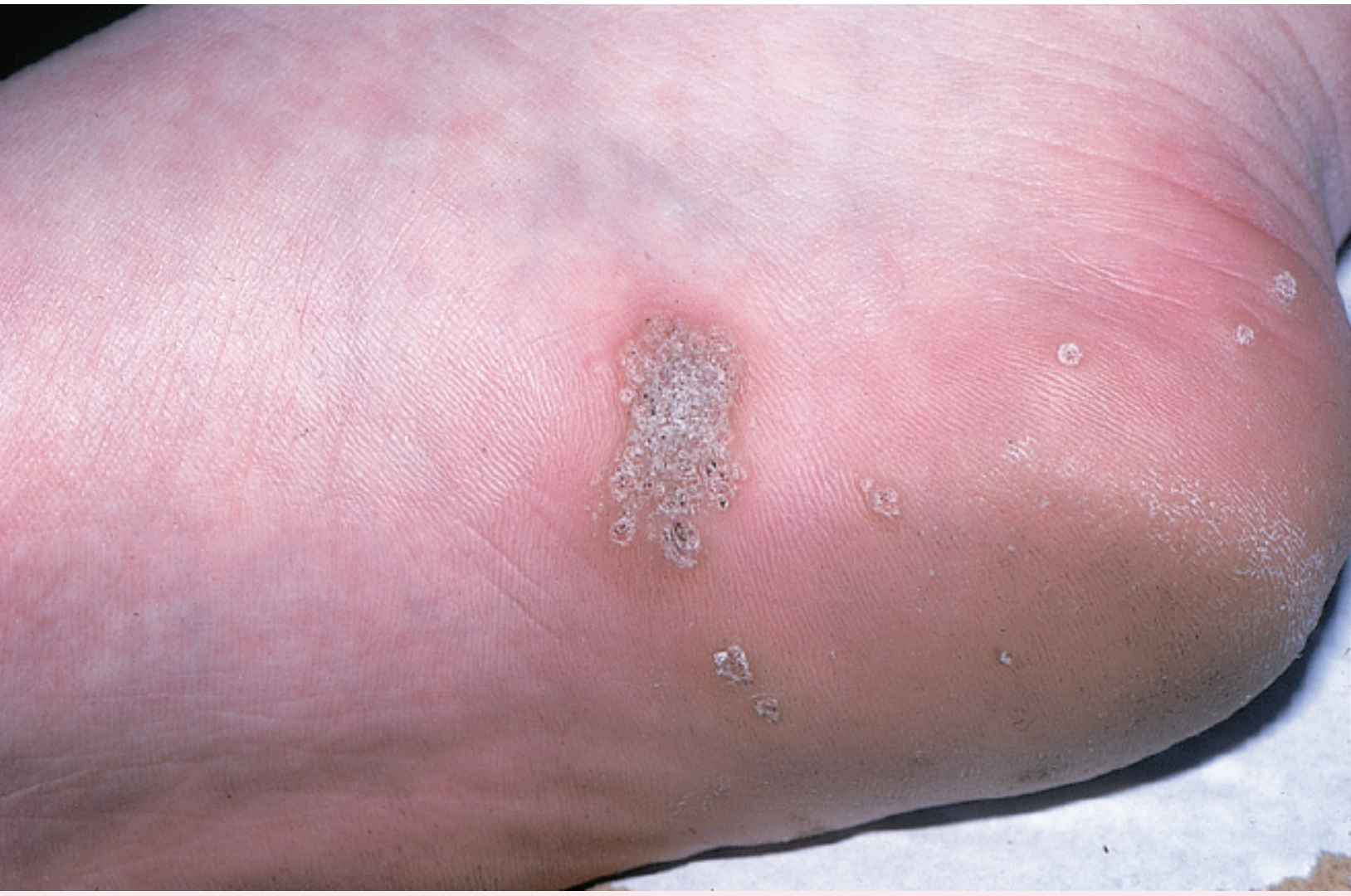 plantar wart - painful warts (verruca vulgaris) that often occur under a callus, appearing as tiny dark spots