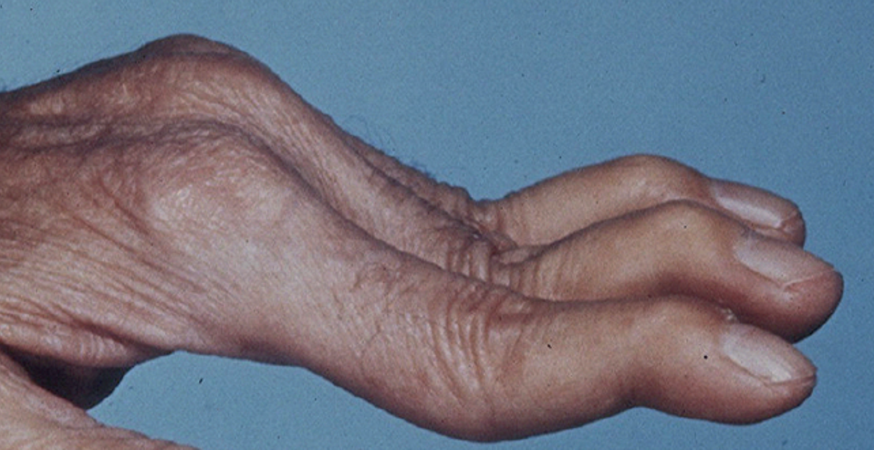 swan-neck deformity.hyperextension of the proximal interphalangeal joint with flexion of the distal interphalangeal joint