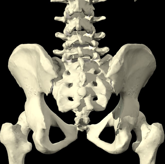 d. facies pelvina: concaaf ventraal vlak, wijst naar kleine bekken
