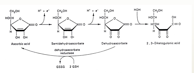 toxicity because it becomes pro-oxidative!! → interferes with synthesis of collagen
