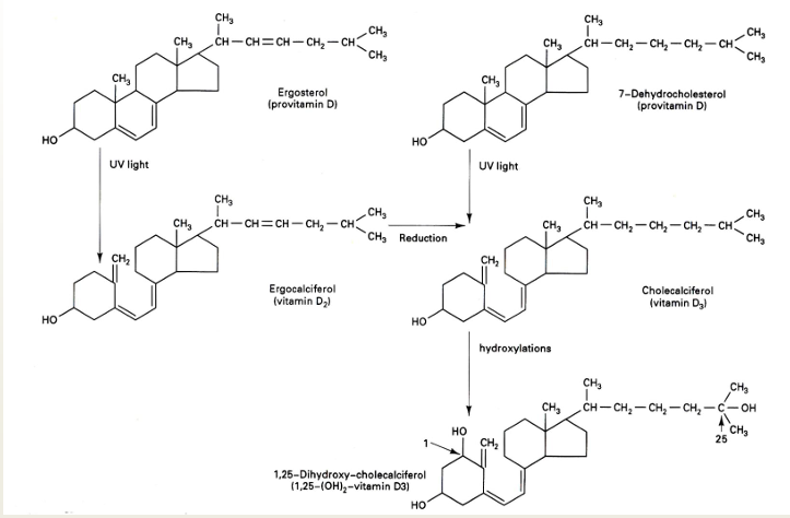 vitamin D’s are not abundant in nature, but their pro-vitamins ergosterol and 7-dehydrocholesterol are present in vegetable and animal food