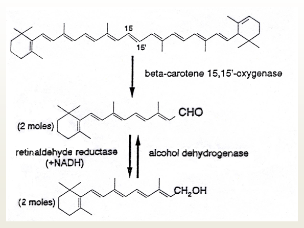 high bioavailability | Low bioavailability Conversion beta-carotene into retinol beta-carotene → retinal → retinol ![]() |