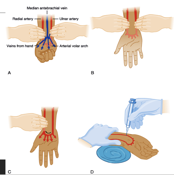 remove pressure from ulnar artery & assess color of extremity distal to pressure point