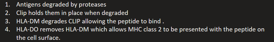HLA-DO removes HLA-DM which allows MHC class 2 to be presented with the peptide on the cell surface.