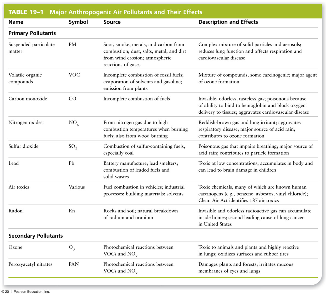 •Particulates, VOCs, CO, NOx, SO2, lead, air toxics