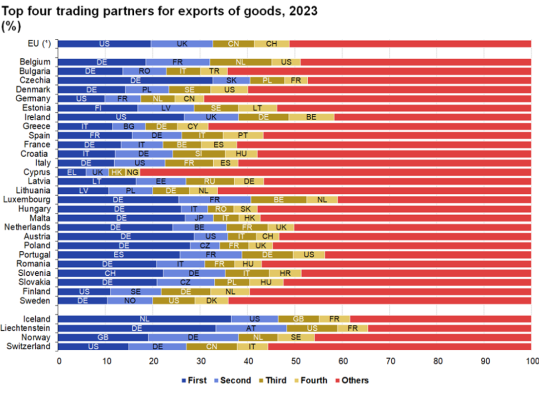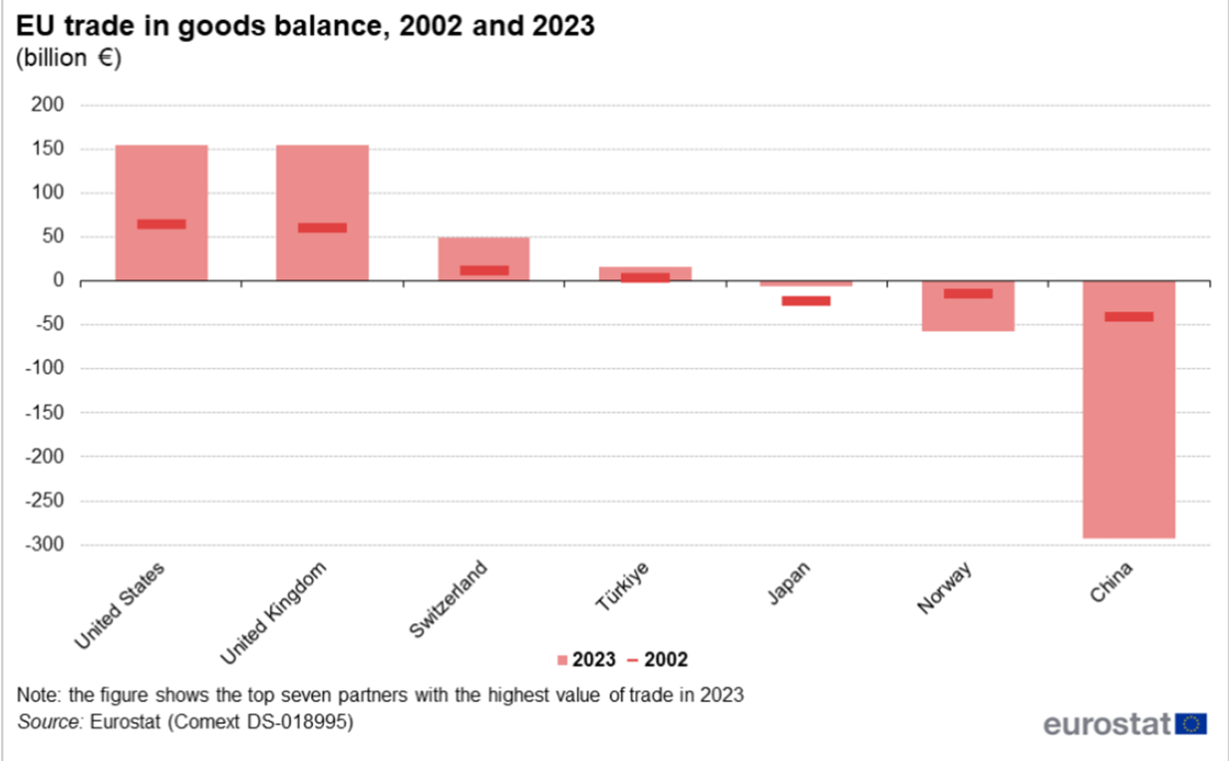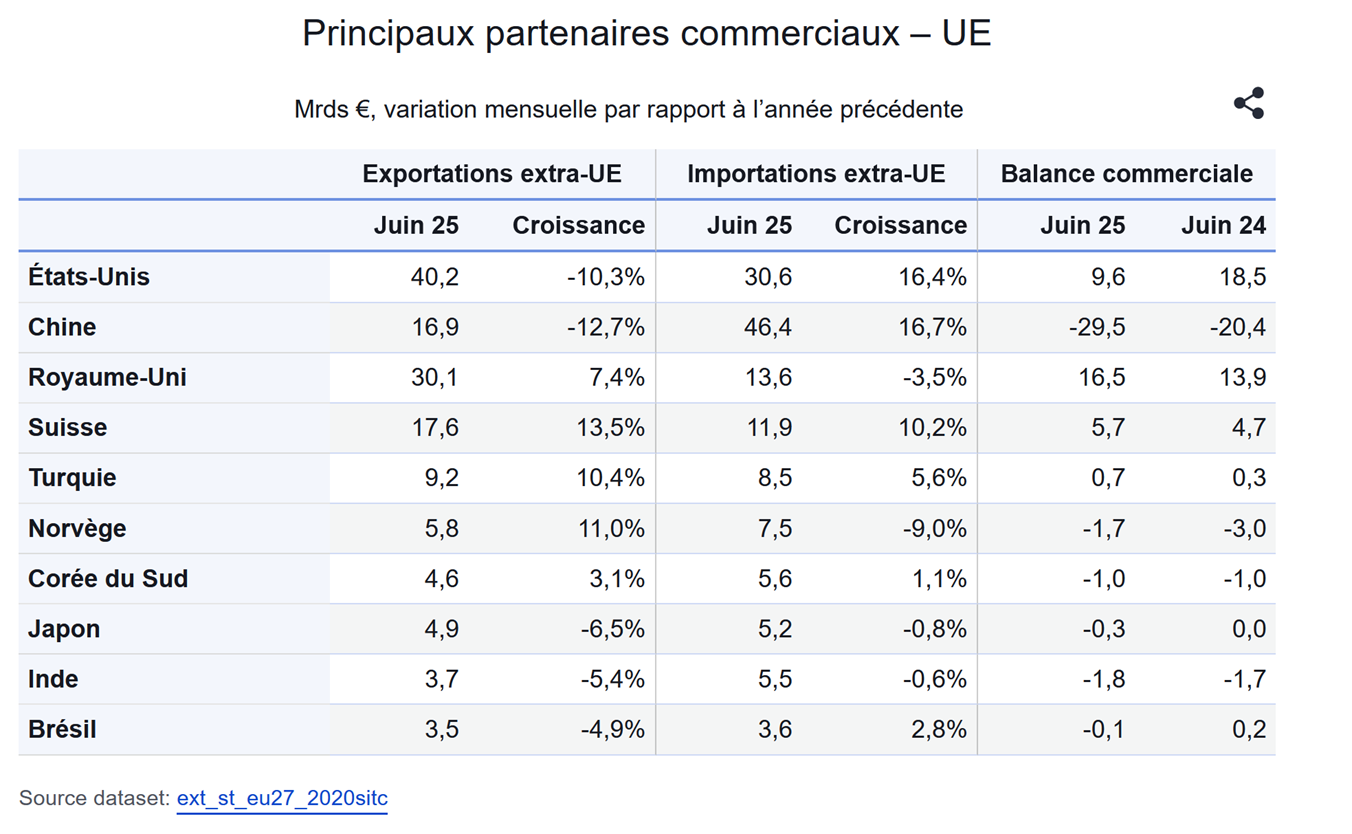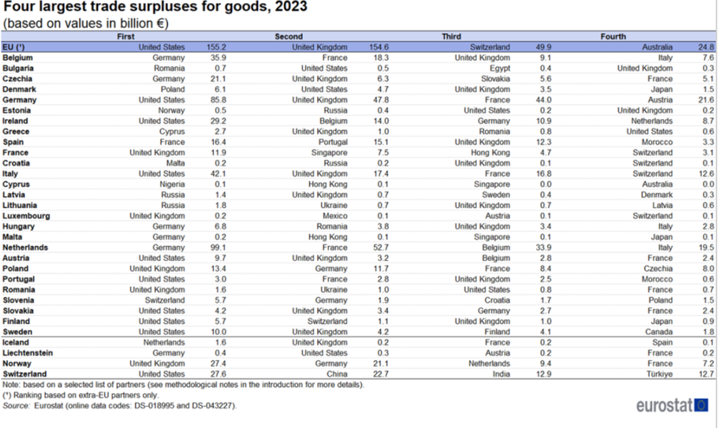 Plus grand surplus de l'UE : USA, UK, Suisse