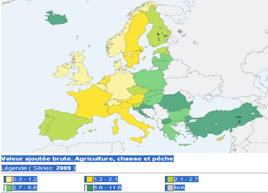 Centre de l'Europe : là où c'est le moins important. Donc ces pays là ne vont pas voter des grosses mesures importantes et couteuses dans ce secteur primaire.