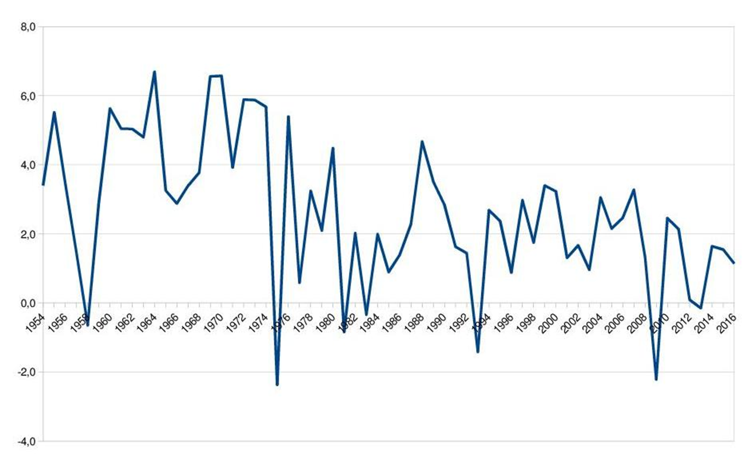 Choc pétrolier en 75, puis deuxième choc années 80. Croissance n'est plus comme avant, atterrissage de la croissance économique. Fase atone.