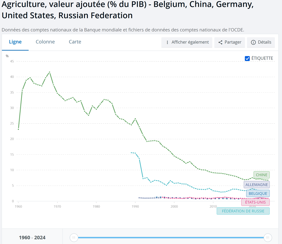 • Tendence à la diminution : le secteur agricole représente de moins en moins en terme de richesse dans l'économie