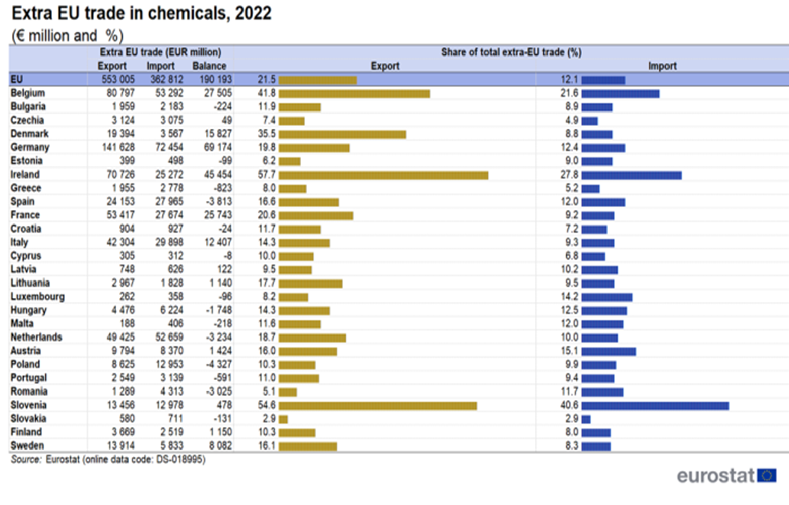 Balance commerciale en hausse, spécialisés dans la chimie qui devient un secteur économiquement important pour l'UE
