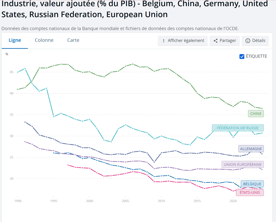 Pays avec un PIB un peu plus faible ont encore des activités industrielles importantes qui pèsent lourd au niveau de la production de richesse.
