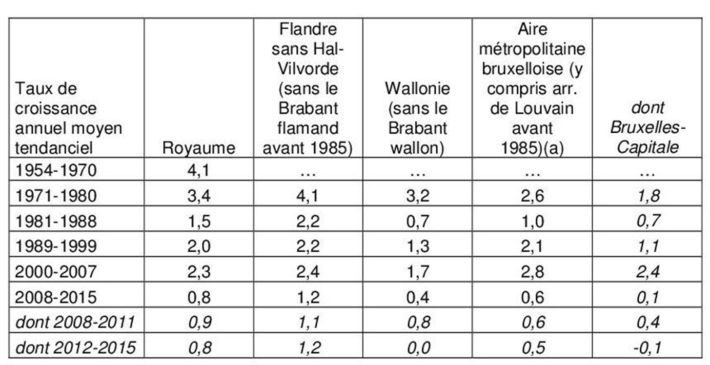 Décrochage de l'Europe par rapport aux USA, ici décrochage Wallon par rapport à la Flandre. Crise sidérurgique des années 80-90.