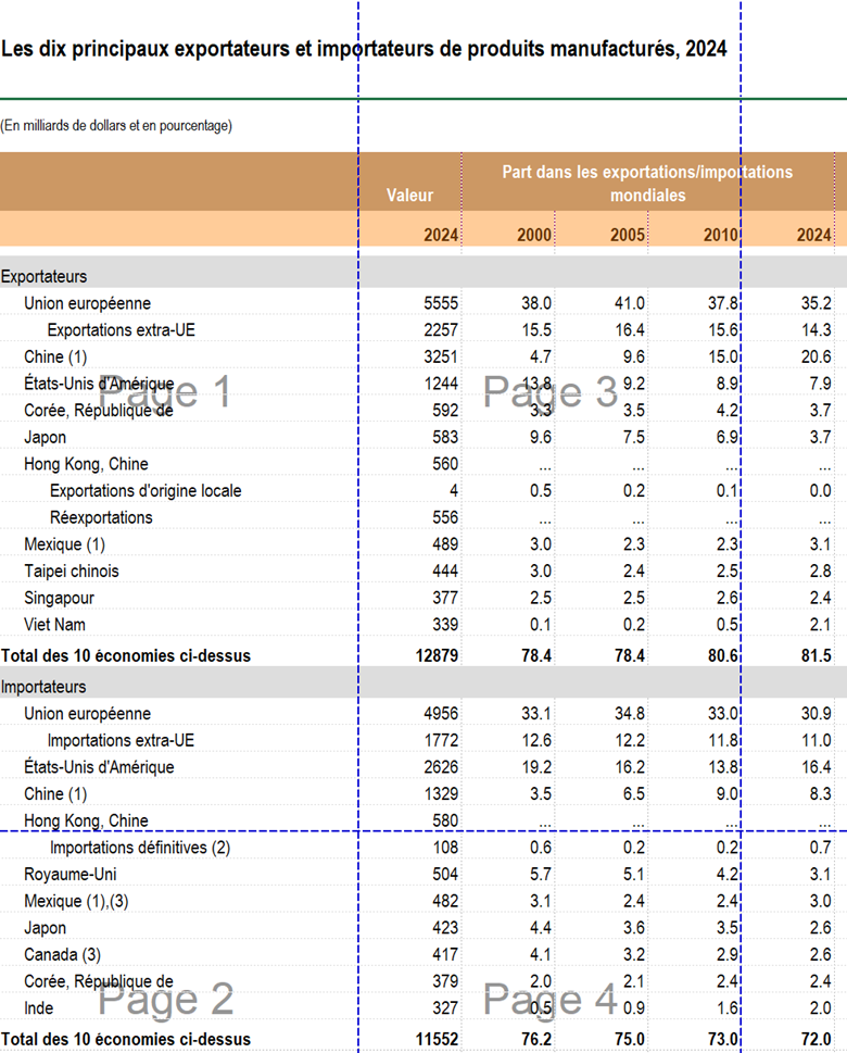 Les dix principaux exportateurs et importateurs de produits manufacturés, 2024 (En milliards de dollars et en pourcentage)