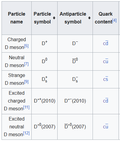 The “open-charm” equivalents to charm mesons. They decay by the weak with a long lifetime