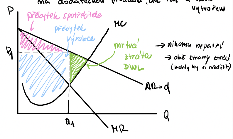 Je to důsledek toho, že nedokonalá konkurence prodává produkci za vyšší cenu, než jsou mezní náklady (P>MC).