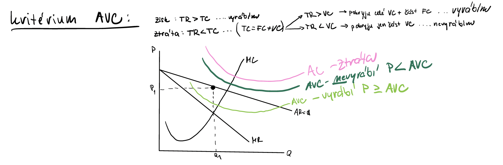 Firma akceptuje ztrátu, pokud jsou celkové příjmy vyšší než variabilní náklady (TR>VC), neboli P > AVC.