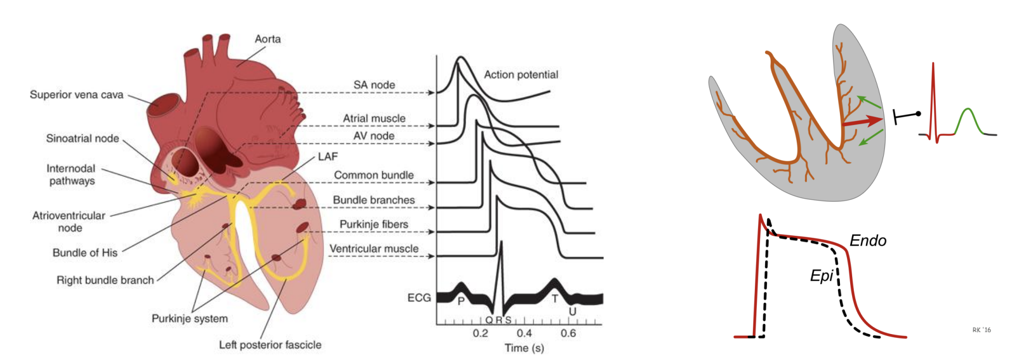 O epicárdio (mais externo) começa a despolarizar depois do endocárdio (mais interno), mas começa a repolarizar antes!
