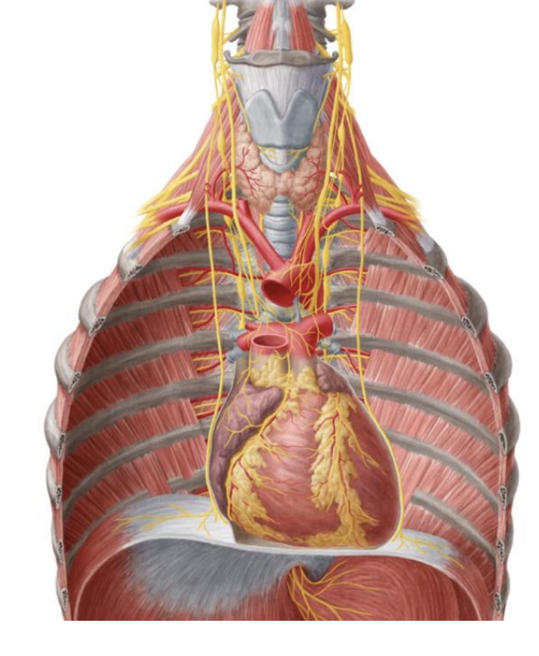 O coração ocupa uma posição central no torax, está no mediastino na posição media do mediastino inferior