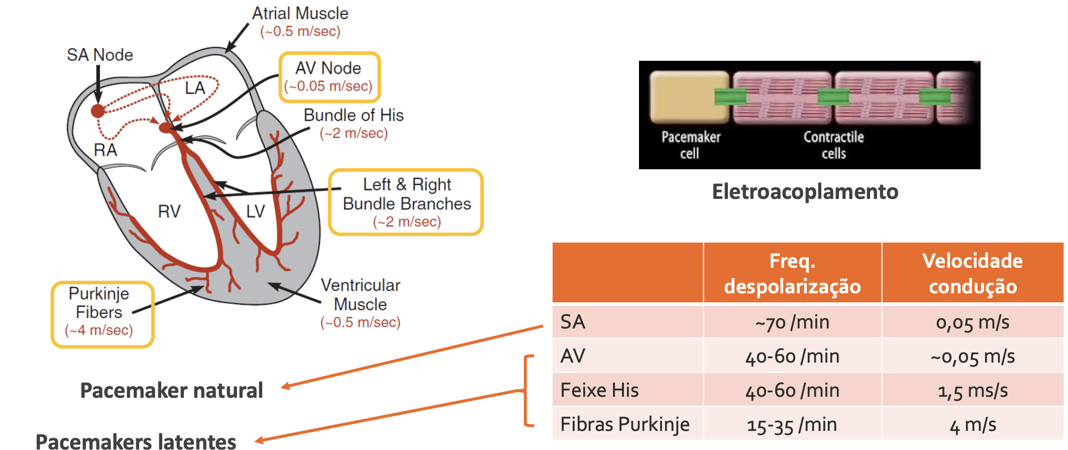 se este falhar, domina o av, e se este falhar domina o feixe de his e se este falhar temos as células de purkinje (diminuindo a frequência) → pacemakers latentes (só funcionam se a estrutra anterior deixar de funcionar)