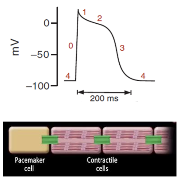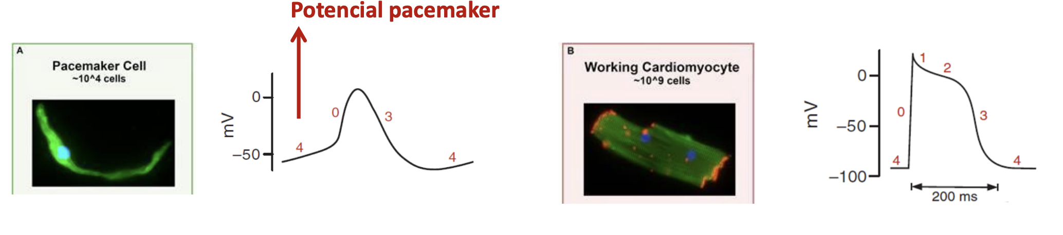 Nota: fase 4 mais curta atinge os potenciais de ação mais rapidamente