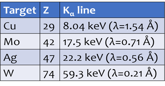 E = hc / λ → 12.4 keV @ 1 Å