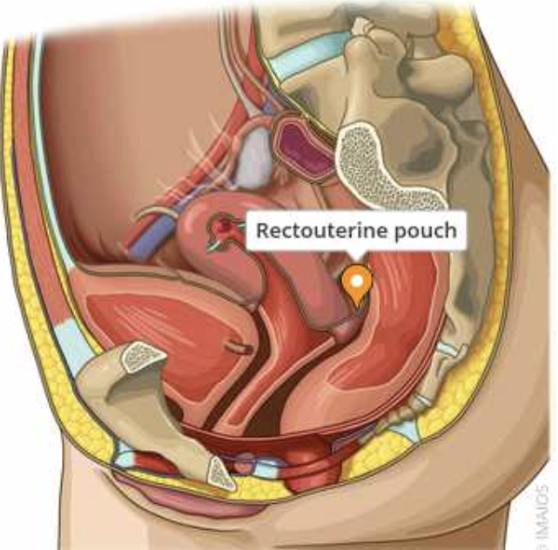 clinical procedure where a needle is inserted through the posterior vaginal fornix into the rectouterine pouch (pouch of Douglas) to check for free fluid in the pelvis.