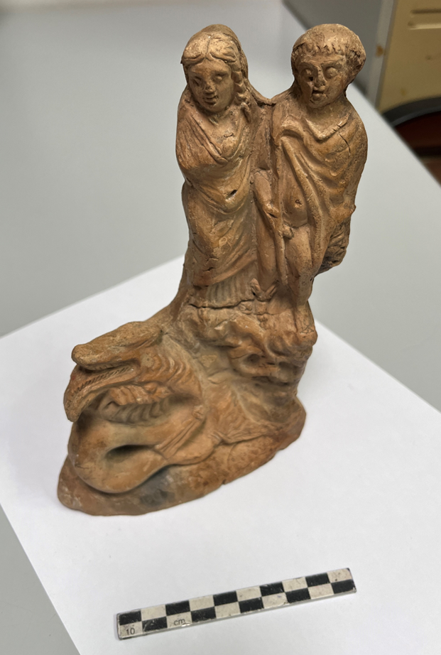 The fragment on the left is dated to the first century CE, this image doesn’t feature until we get to wall paintings in Pompeii- no known earlier president for this composition. It shows Perseus and Andromeda seated on a rock with a pool of water at their feet, Perseus is shown holding the head of Medusa up, Andromeda is peering into the pool of water below. Its the most popular composition in the campanian wall paintings- but it also appears on mosaics and gemstones